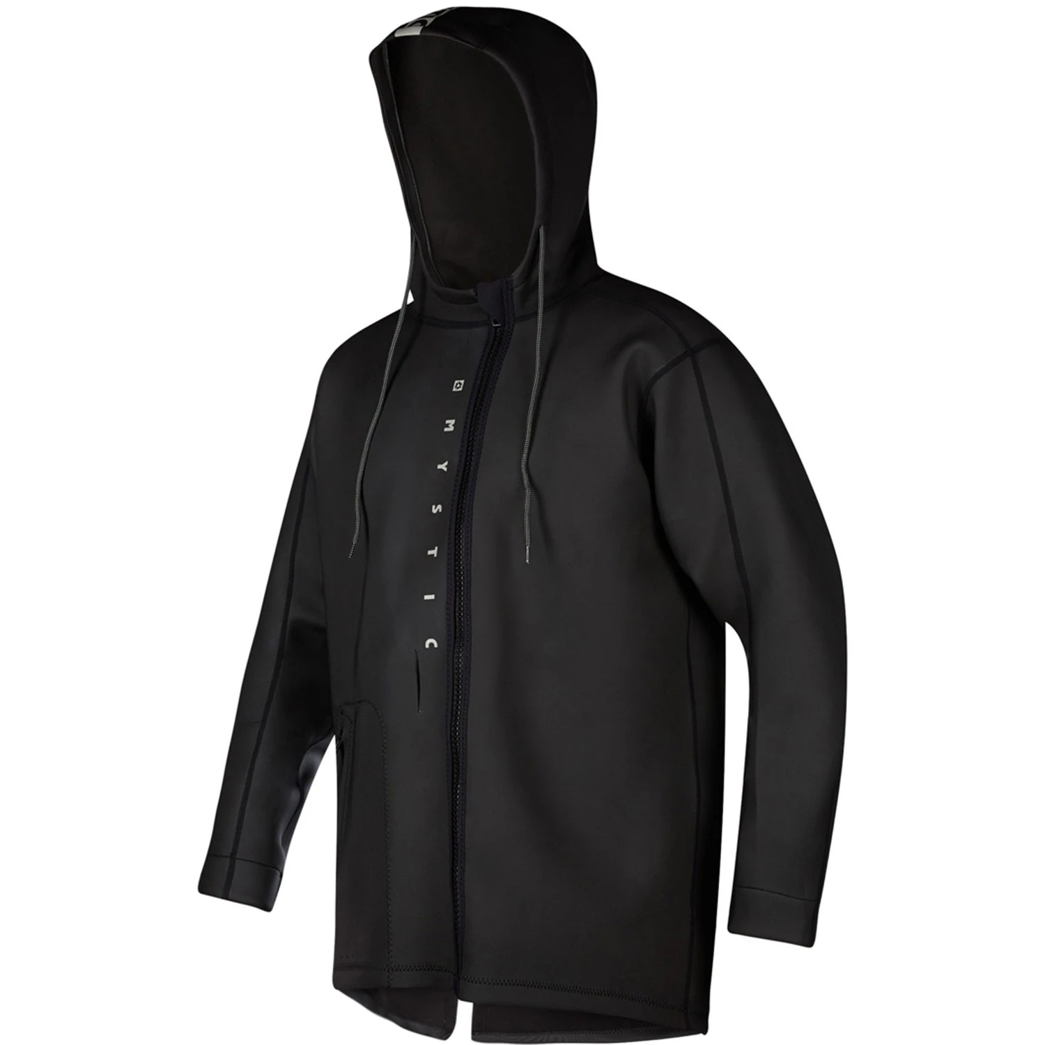 - Fitted hood with high collar